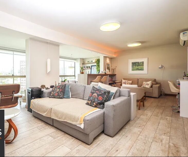 Apartamento em andar alto mobiliado com 120 m² de área privativa com 3 dormitórios sendo 1 suíte, banheiro social com ventilação natural, living amplo para 3 ambientes com espaço gourmet e churrasqueira, janelões amplos proporcionando ótima iluminação e ventilação, cozinha montada com área de serviço individual. Possui 2 vagas de garagens cobertas e escrituradas. Condomínio conta com infraestrutura completa, piscina adulta e infantil, academia, brinquedoteca, playground, sala de jogos, quadra poliesportiva, quadra de tênis, salão gourmet, salão de festa, portaria 24 horas. Localizado próximo ao supermercado Zaffari da Av. Plinio Brasil Milano e todas as facilidades que o bairro oferece.