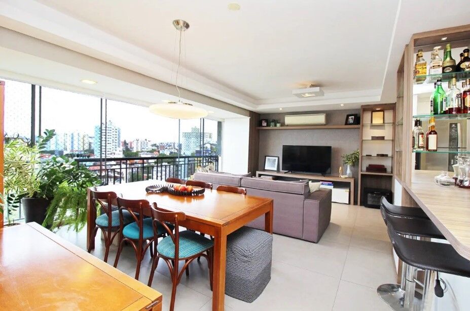 Imóvel de 3 dormitórios sendo 1 suíte, andar alto com linda vista, living para 3 ambientes com sacada integrada, espaço gourmet churrasqueira, lavabo, cozinha mobiliada e ampla área de serviço independente, com ventilação própria e ótima incidência de sol. Todos os banheiros possuam ventilação natural. Todas as peças possuem vista e sol da manhã e da tarde (norte).