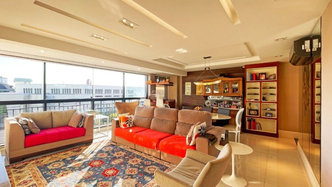 Excelente oportunidade no Jardim Europa, com 120,89m² privativos, ensolarado, vista, 3 quartos sendo 1 suíte, closet, living 2 ambientes com sacada integrada, churrasqueira e lareira, lavabo, cozinha americana com móveis sob medida, área de serviço independente; Possui vaga para dois veículos cobertas e escrituradas. Ficam móveis sob medida.