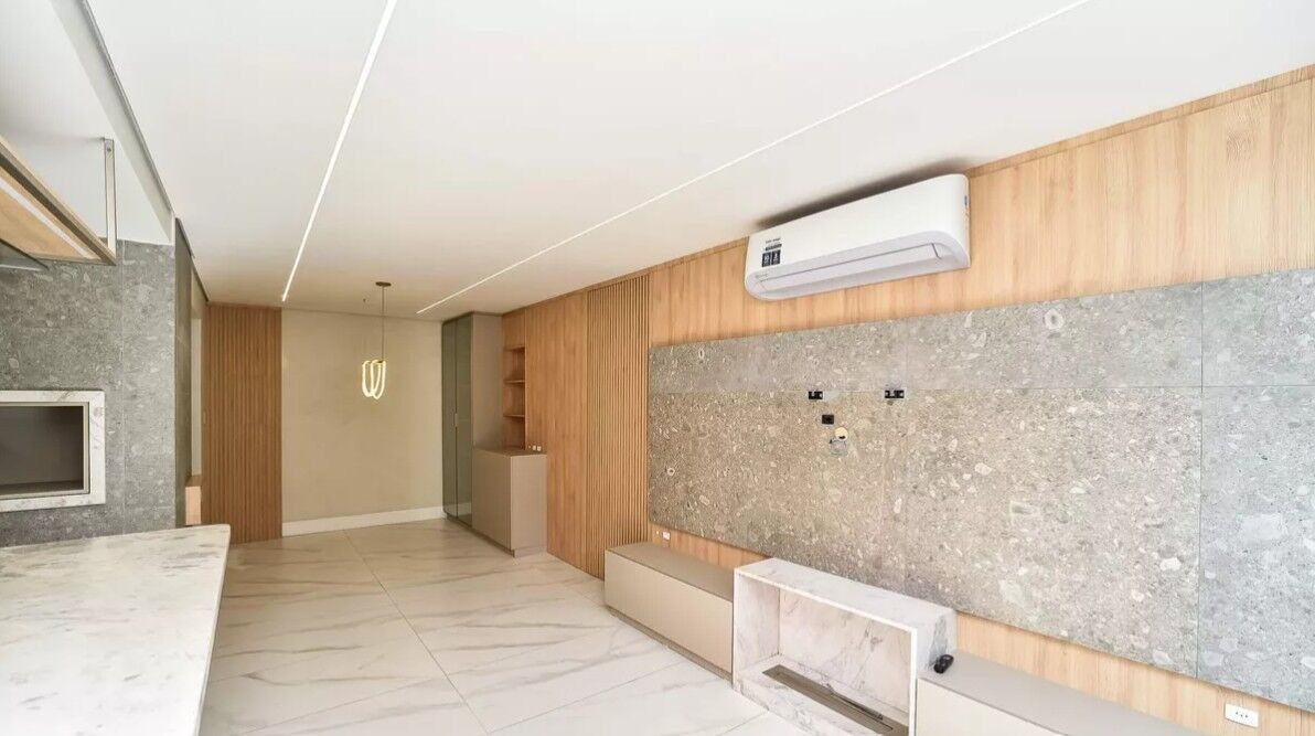 Imóvel de 3 dormitórios sendo 1 suíte, cozinha com armários e cooktop, aquecedor à gás, churrasqueira, split, dormitórios com móveis planejados, banheiros com ventilação natural.