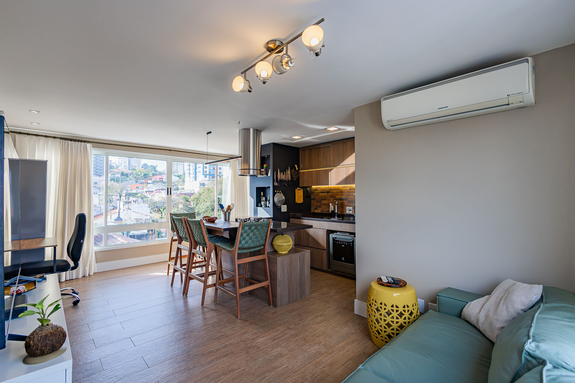 Ficam todos os moveis fixos/planejados + 02 ar condicionados + coifa + cooktop.