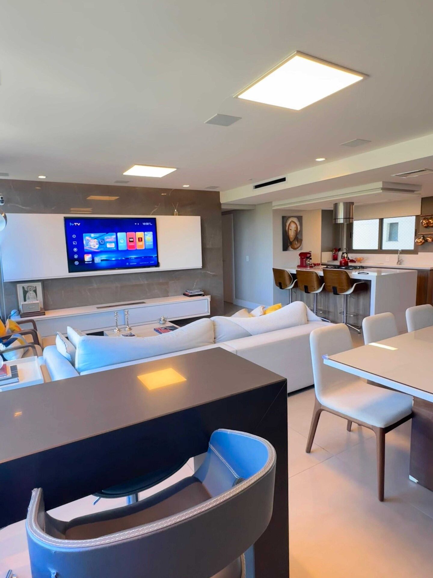 3 Dormitórios, sendo 1 suíte3 Banheiros2 Vagas1 Closet1 Escritório3 Salas de TV1 Cozinha2 Salas de jantar2 Salas de estar1 Área de serviço
