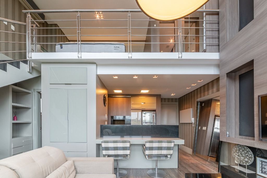 Lindo loft finamente mobiliado e decorado, ensolarado, living amplo com cozinha americana, lavabo, linda vista, pé direito duplo, suíte com closet, todas peças climatizadas. Prédio em excelente localização em condomínio com salão de festas, fitness, sauna, churrasqueira com forno pizza, deck molhado, espaço gourmet, piscina adulto, piscina infantil, spa, espelho d água, piscina com borda infinita, salão de festas com espaço gourmet, piscina térmica com raia de 20m, serviços pay-per-use, elevadores panorâmicos, lounge externo com lareira, espaço gourmet externo. 01 vaga de garagem coberta. Venha conferir!
