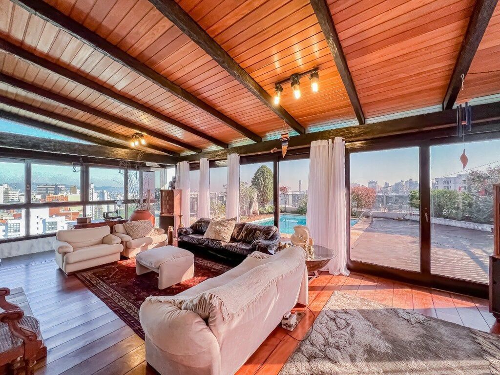 A vista mais linda de Porto Alegre podemos apreciar desta incrível cobertura.Amplitude também define esse imóvel, são 483,42m² privativos distribuídos em 3 andares.No primeiro piso encontramos um super living com 03 ambientes bem definidos, sacada, lavabo, 03 dormitórios sendo 01 suíte, cozinha com copa, área de serviço, dependência de empregada completa.No piso intermediário encontramos o escritório.No piso superior temos um living para 04 ambientes, churrasqueira, lavabo, banheiro auxiliar e uma piscina maravilhosa. São 03 vagas de garagem. O condomínio oferece salão de festas com churrasqueira, vagas de estacionamento para visitantes, portaria 24hs e zeladoria.Whatsapp: 8228-6060www.lyonimoveis.com.br | AP2601