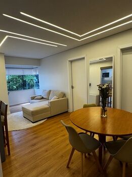 Eletros inclusos: -Geladeira; -Cooktop; -Ar condicionado quarto; -Microondas; -Máquina de lavar; Móveis etc: -Cortina em linho; -Cama box baú; -Sofá de linho; -Rack; -Tapete; -Suporte televisão; -Mesa de madeira maciça com 4 cadeiras; -Sapateira; -Espelhos; -Cadeira de escritório; -Banquetas em madeira maciça e linho; Recém reformado no último ano, com tudo novo e muito bem conservado. Ambientes bem distribuídos, aconchegantes e com excelente padrão de opção para investimento. Imóvel com ótima liquidez.