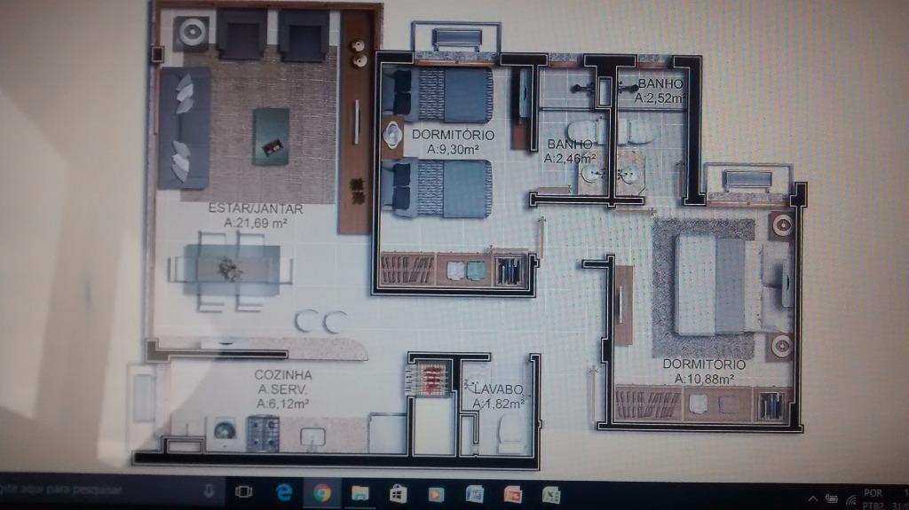 2 Dormitórios, sendo 2 Suítes3 Banheiros1 VagaGaragem Coberta1 Sala de estar