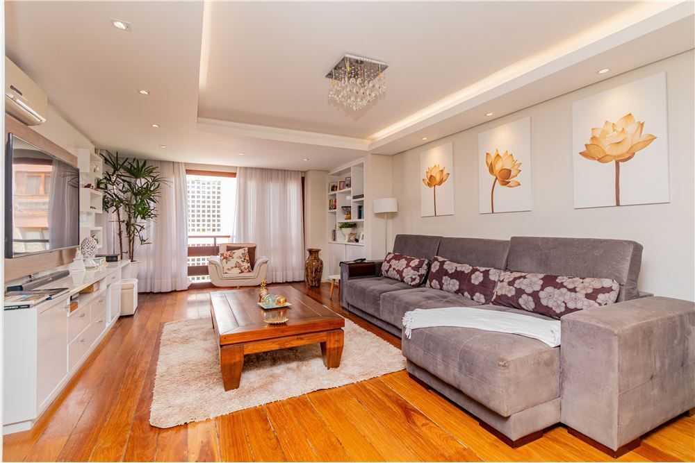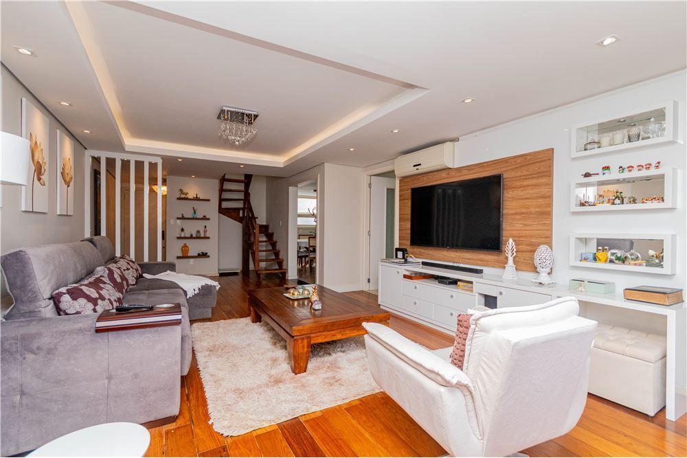 Excelente cobertura com 249 m² no bairro Menino Deus. Com 03 dormitórios, todos com ar condicionado, sendo 1 suíte com banheira de hidromassagem e closet, banheiro social e lavabo. Living amplo e lindamente mobiliado. Despensa, copa/cozinha mobiliada, com conceito aberto. Cobertura com living para 03 ambientes com lareira e churrasqueira, ateliê , lavabo e lavanderia. Área externa com deck para a piscina. Possui 03 vagas de garagem escrituradas. Localizado próximo ao hospital Mãe de Deus, Orla do Guaíba, escolas, bancos e comércio local.