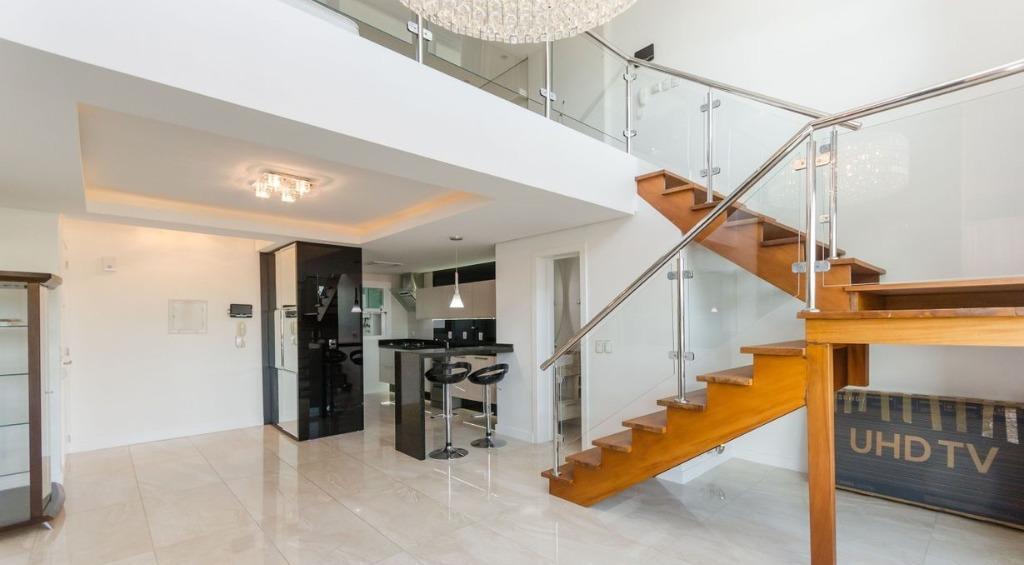 Lyon Imoveis aluga belíssimo duplexa com área privativa de 97,90m² estilo americano com pé direito de 6 metros, finamente decorado, com cortinas automatizadas, piso aquecido nos 2 andares, porcelanato italiano, lustres de cristal, lareira ecológica, escadaria em madeira nobre, vídeo fone nos dois andares, com geladeira, forno embutido de microondas e forno elétrico, máquina de lavar louça e lavar e secar roupa. Duas vagas de garagem lado a lado, tudo pronto, em zona nobre tudo de alto padrão, a 5 minutos do Bourbon Country, 8 minutos do Shopping Iguatemi.Agende sua visita 99117-0347