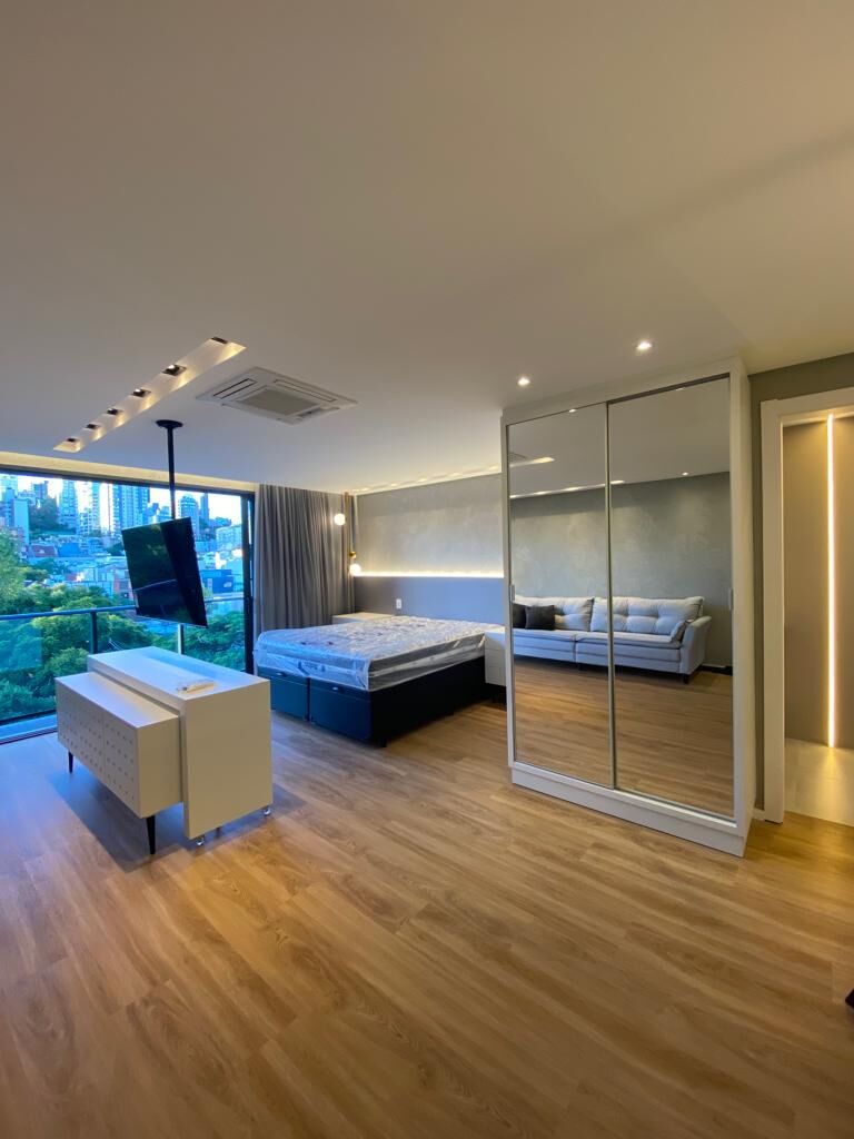 Loft mobiliado para locação no bairro Petrópolis, no empreendimento Praça Nilo em Porto Alegre.